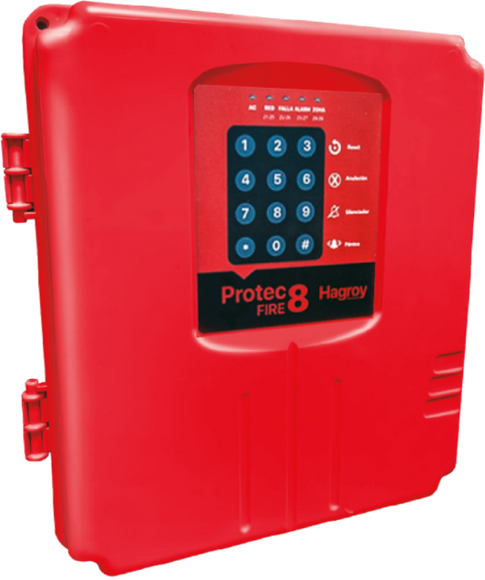 Panel de Alarma contra Incendio Hagroy de 8 Zonas Cableadas con Teclado y Gabinete Hermético.