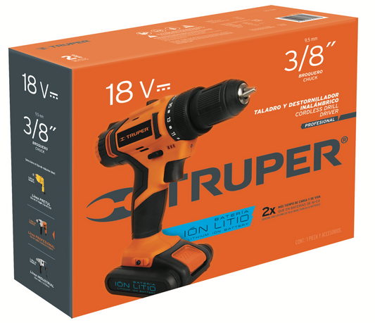 Taladro Inalámbrico Truper 1/2 20V Profesional con Batería.