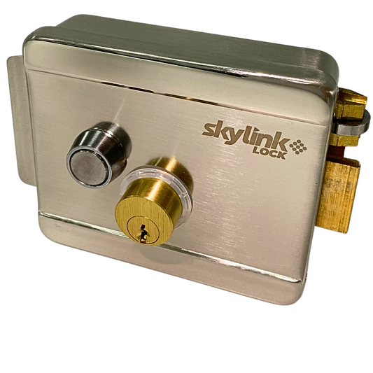 CERRADURA ELECTRICA SKYLINK CON BOTON DE SALIDA, INCLUYE LLAVE, EXTERIOR, IZQUIERDA Y DERECHA