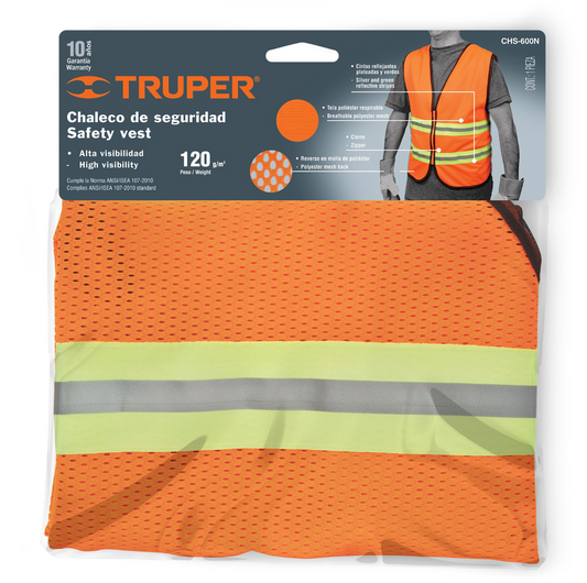 Chaleco Reflectivo Naranja con Cierre Truper CHS-600N.