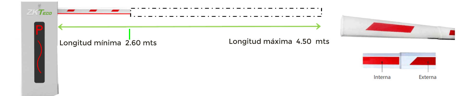 Brazo Metálico ZkTeco de 6 Metros / Telescópico / Para Barrera Vehicular