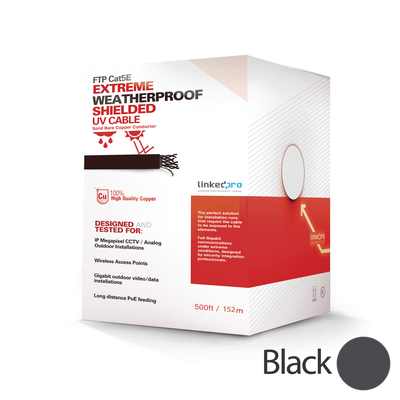 Cable UTP Cat5E Linkedpro / Color Negro / Exterior / 100% Cobre U / 152 Mts.