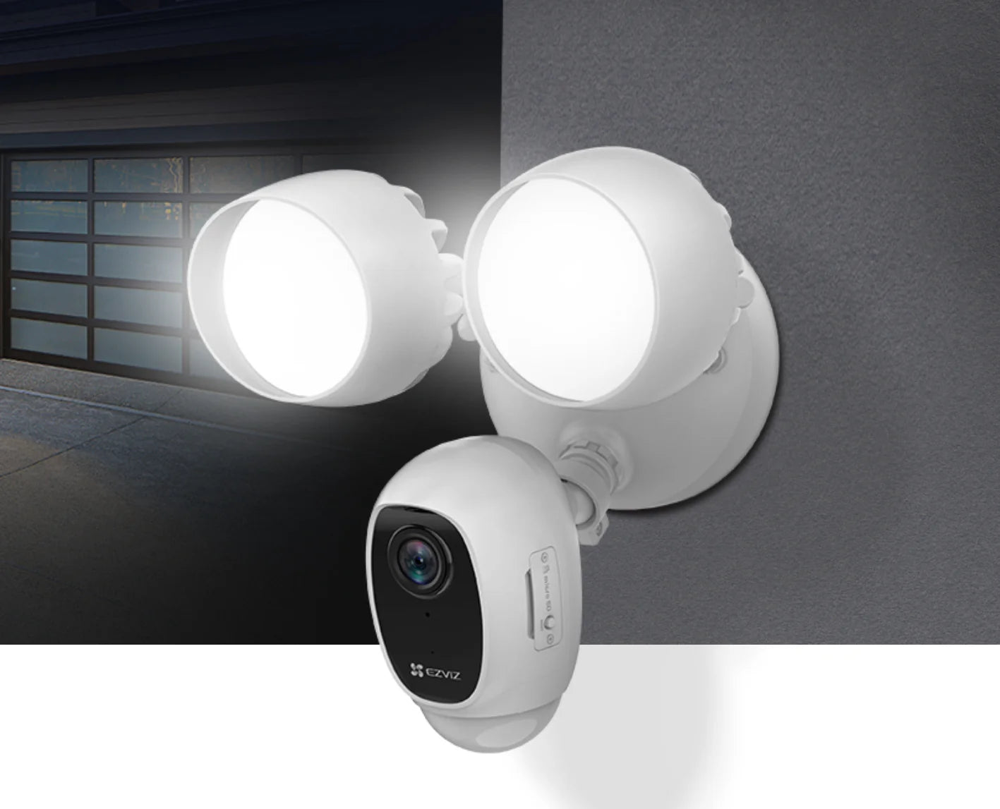 La EZVIZ LC1C es una cámara de seguridad y un reflector exterior en un paquete increíble, que satisface su necesidad de seguridad e iluminación nocturna en el patio, el camino de entrada y más. Más que solo explotar un total de 2000 lúmenes de brillo, la cámara LC1C monitorea su entorno con defensa activa y notificaciones de movimiento en tiempo real.