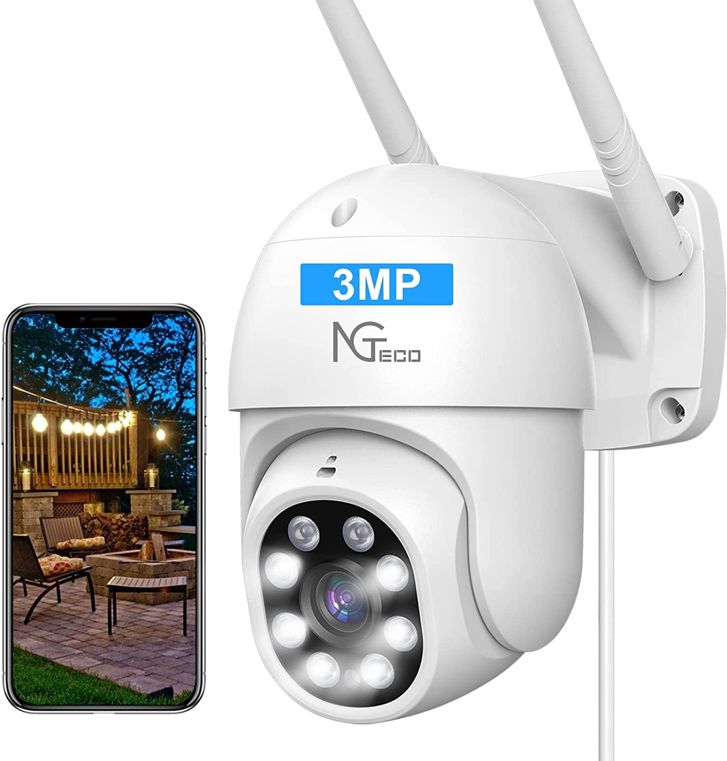 - Cámara de seguridad HD 2K 3MP y visión nocturna a todo color: la cámara wifi de seguridad NGTeco de 3MP proporciona una imagen ultra HD de 3MP (2304×1296), lo que te permite ver cada detalle del monitoreo claramente. 8 LED IR integrados, incluso en entornos extremadamente oscuros, pueden mostrar una visión nocturna a todo color muy clara, extendiendo tu visión nocturna a al menos 65 pies.