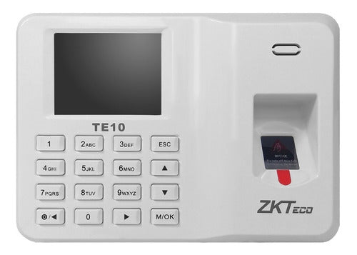 - ZKTeco TE10 es una terminal biométrica para la gestión de tiempo y asistencia de empleados con función SSR integrada, lo que lo hace ideal para pequeñas empresas.