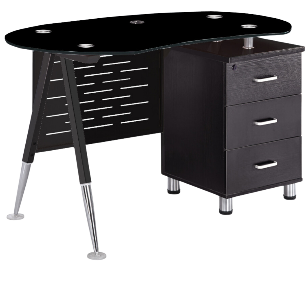 ESCRITORIO SIT COLOR NEGRO, BASE OVALADA, 3 CAJONES, BASE DE VIDRIO, W120cm x D70cm x H75cm