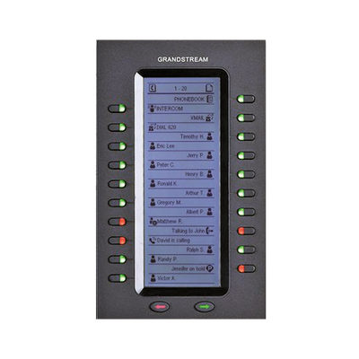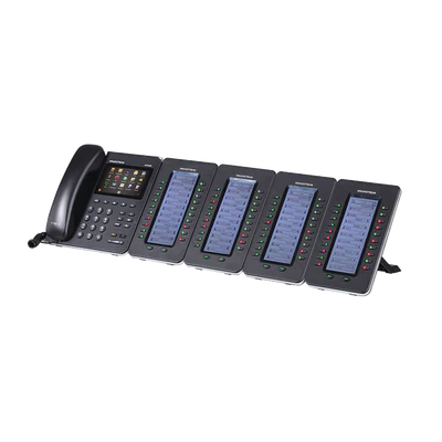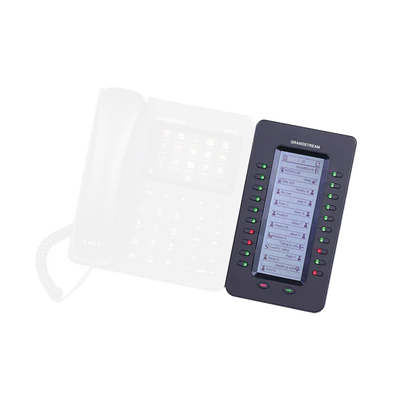 El módulo de extensión GXP2200EXT es soportado por el GXP2140, GXP2170, GXV3240 y GXP2200. El módulo incluye 20 teclas de extensión de dos colores y dos teclas de flecha para cambiar de página, permitiendo a cada GXP2200EXT contar con hasta 40 extensiones. Tiene una gran pantalla LCD retroiluminada para fácil visualización. Se pueden conectar hasta 4 módulos GXP2200EXT para tener un total de 160 contactos/extensiones.