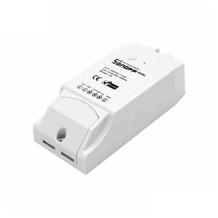 Sonoff DualR2 es un conmutador de 2 bandas basado en WiFi que puede conectar y controlar de forma independiente dos dispositivos o luces conectados. ¡Esto simplemente significa que 1 interruptor de control Sonoff DualR2 equivale a 2 interruptores básicos Sonoff! El interruptor de luz de grupo Sonoff DualR2 2 hereda las ventajas del interruptor Sonoff Basic, como una fácil instalación y operación, acceso rápido a WiFi, control remoto a través de la aplicación EweLink.