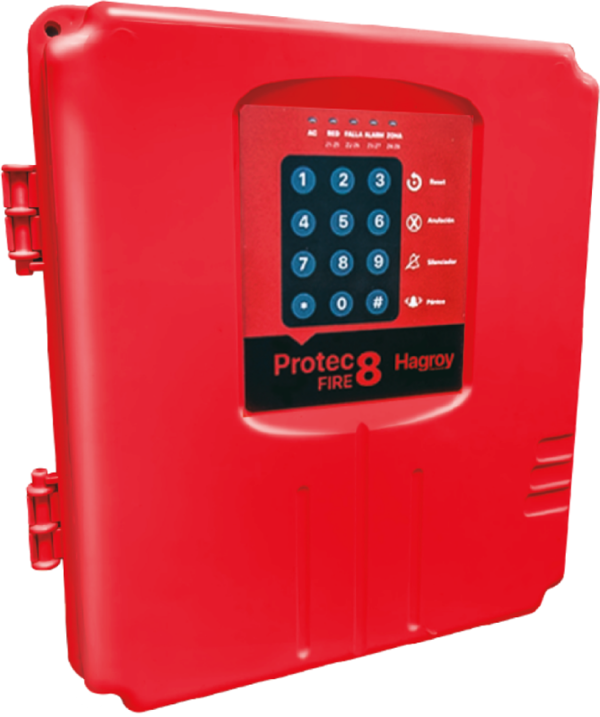 Panel de Alarma contra Incendio Hagroy de 8 Zonas Cableadas con Teclado y Gabinete Hermético.