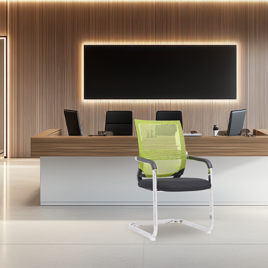 Silla de Visita SIT: Comodidad y estilo en una sola pieza. Diseñada con soporte lumbar, base cromada resistente, tejido de malla transpirable y reposabrazos de PVC. Disponible en colores negro y verde, ideal para recibir a tus clientes con elegancia y ergonomía.