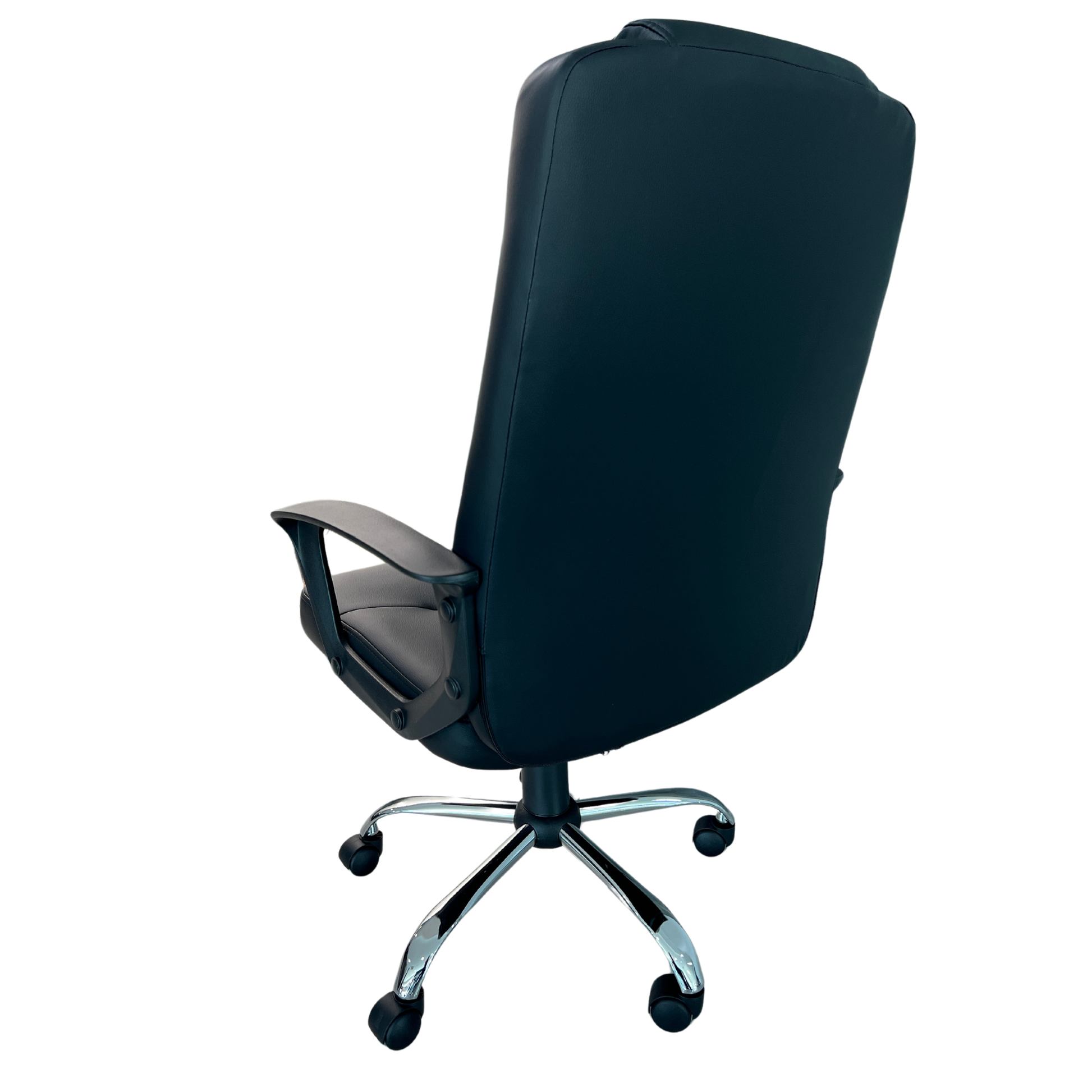 🔸 Diseño Premium: Con respaldo alto y tapizada en piel sintética, esta silla ejecutiva en color negro combina sofisticación y comodidad para cualquier espacio de trabajo.