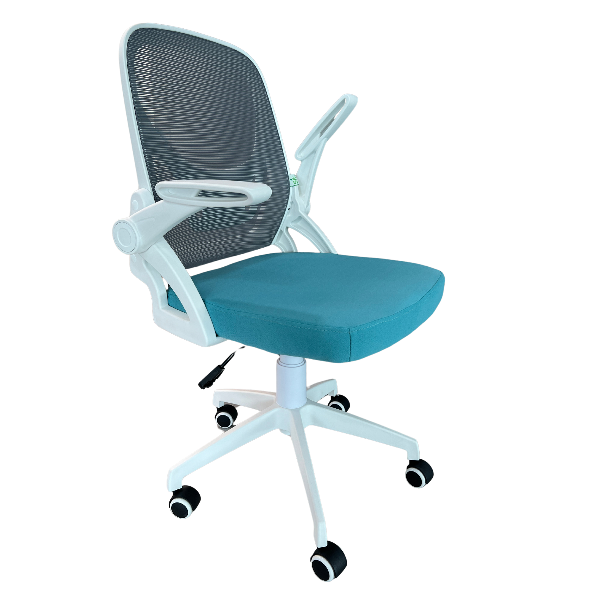 Silla Ejecutiva SIT / Tela de Malla, Color AZUL, Base de PVC Color Blanco.