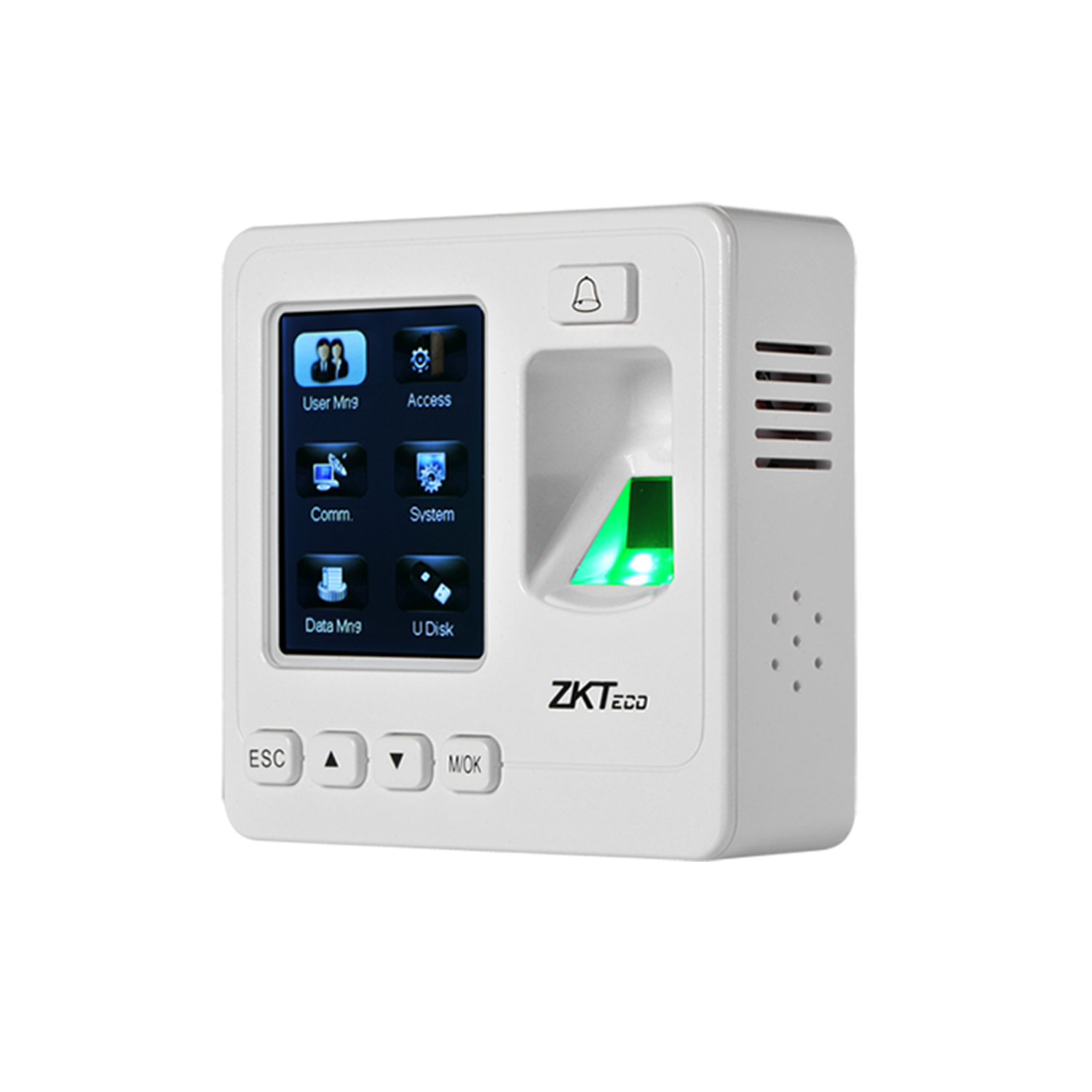 El SF100 es una terminal con lector de huella digital. Se puede conectar con el software ZKAccess3.5 para control de acceso y gestión de tiempo y asistencia.