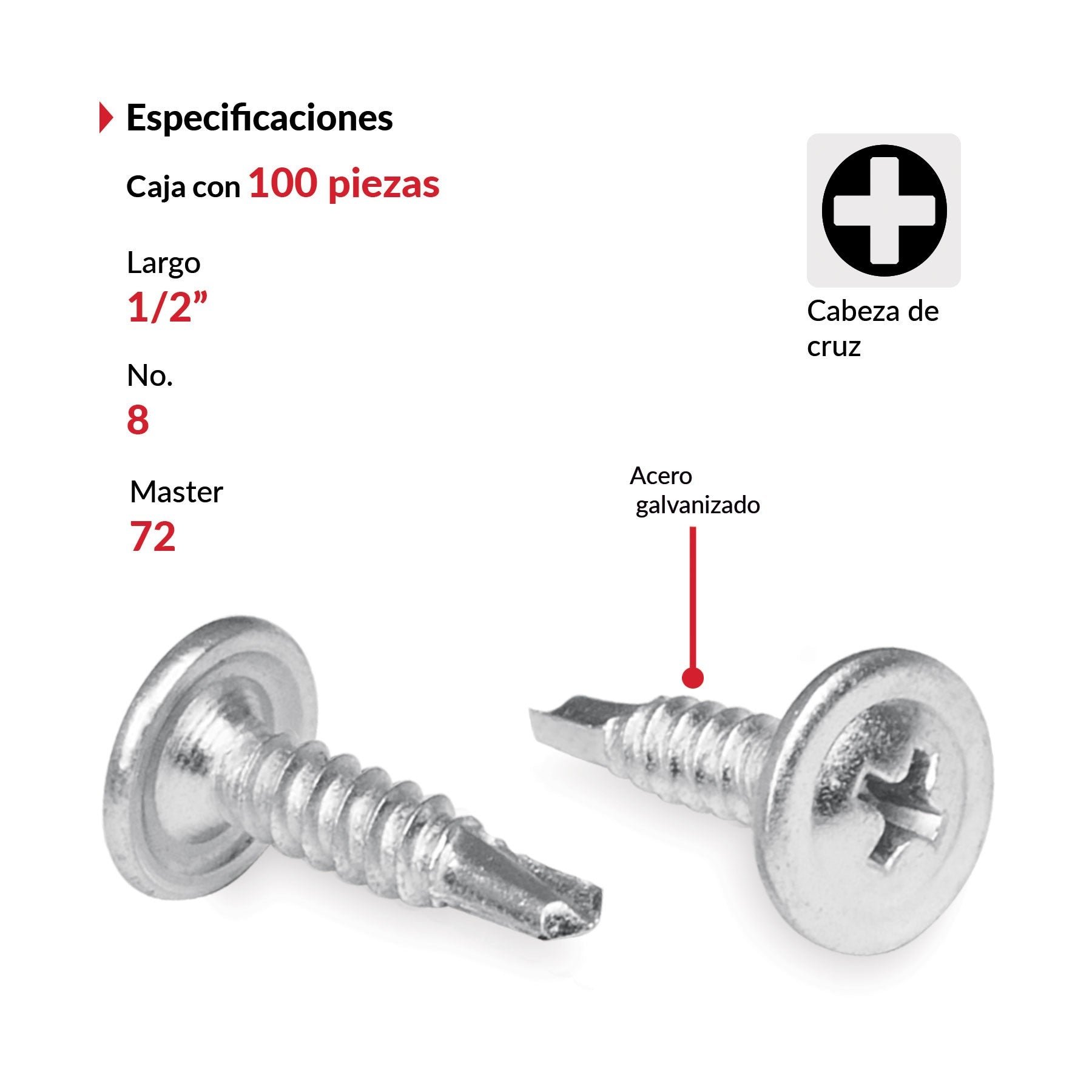 Tornillo Punta de Broca, 3/4 pulg. Cabeza Cruz